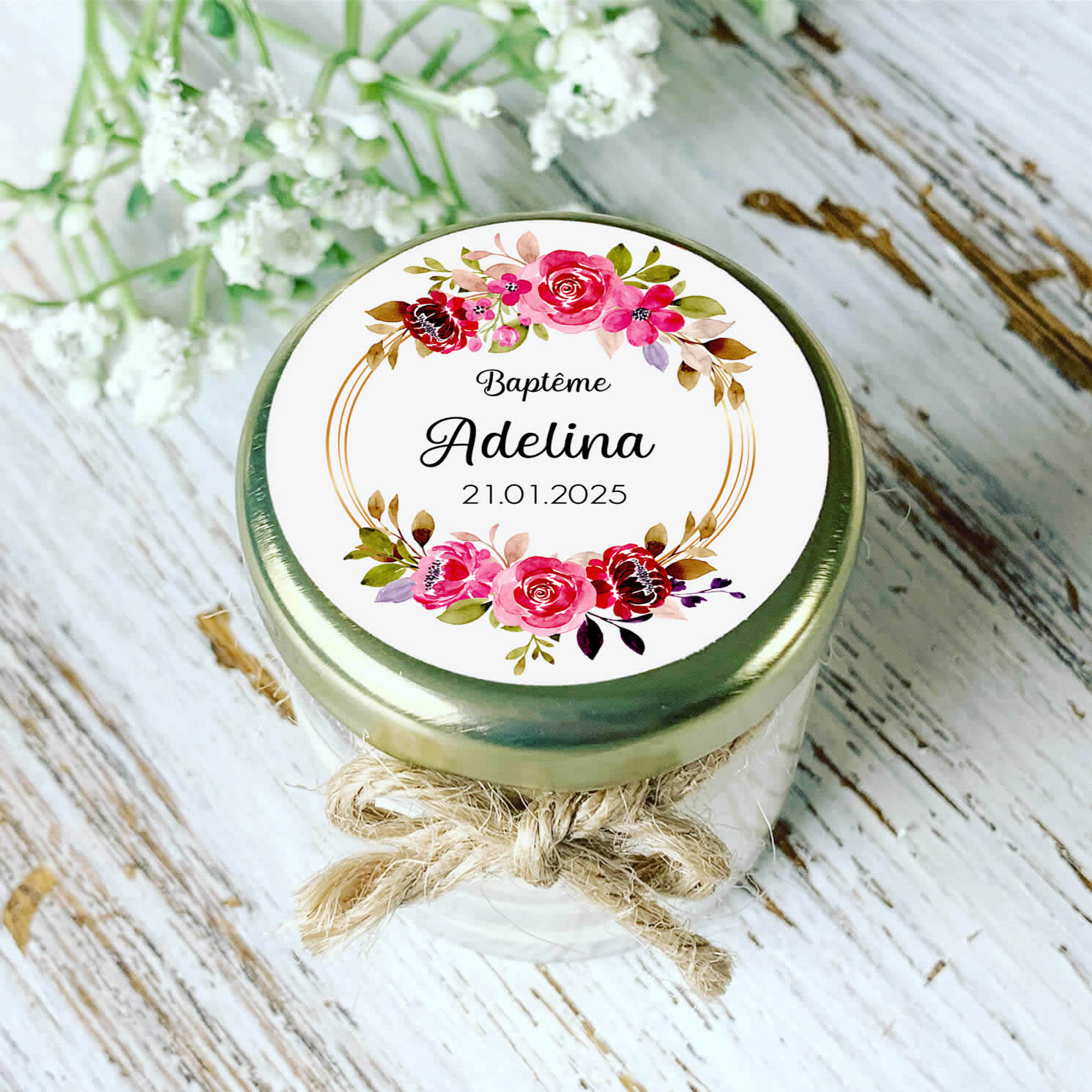 Bougie baptême fille personnalisée - Idée cadeau invités floral