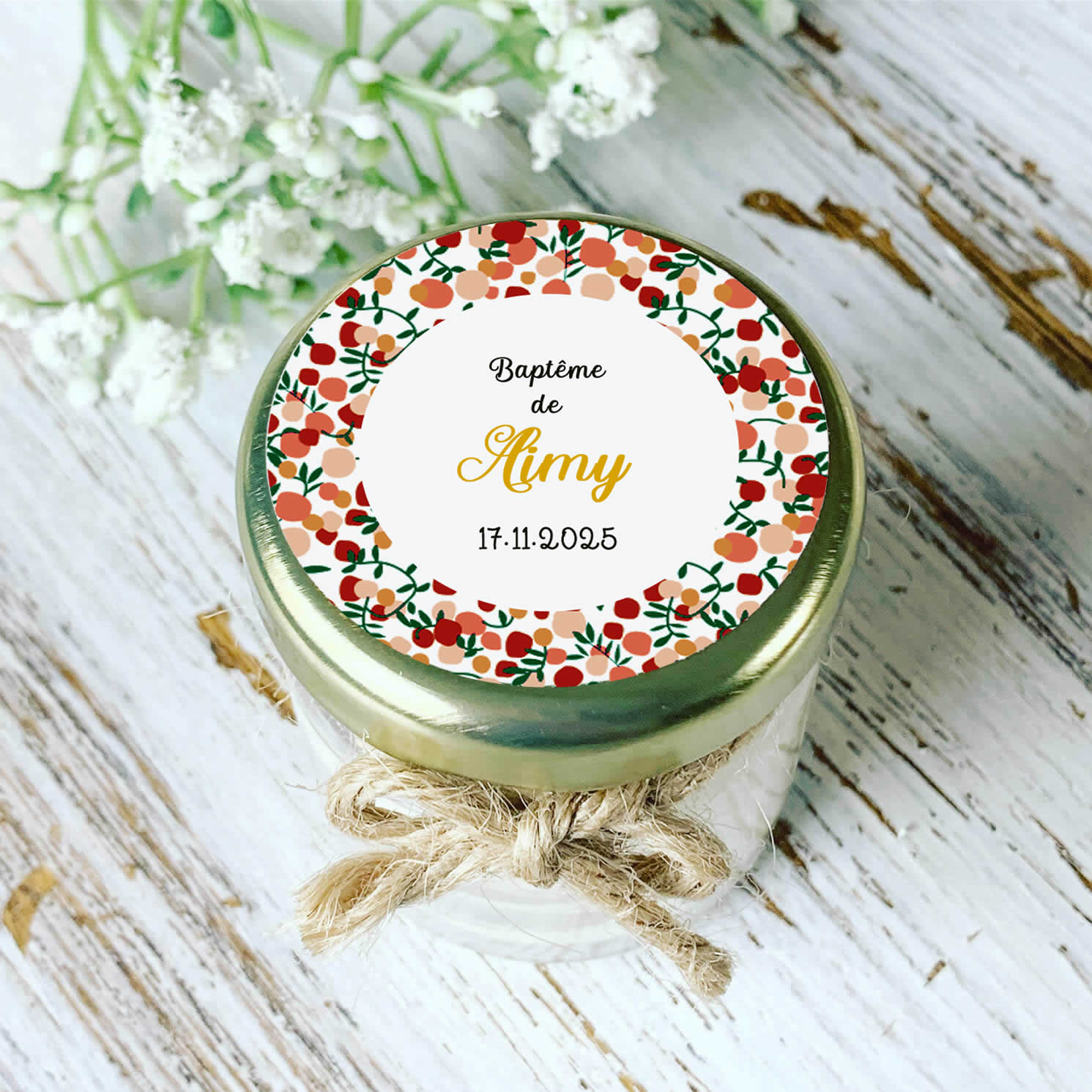 Bougie personnalisée baptême Liberty – Cadeau invités élégant et petit budget