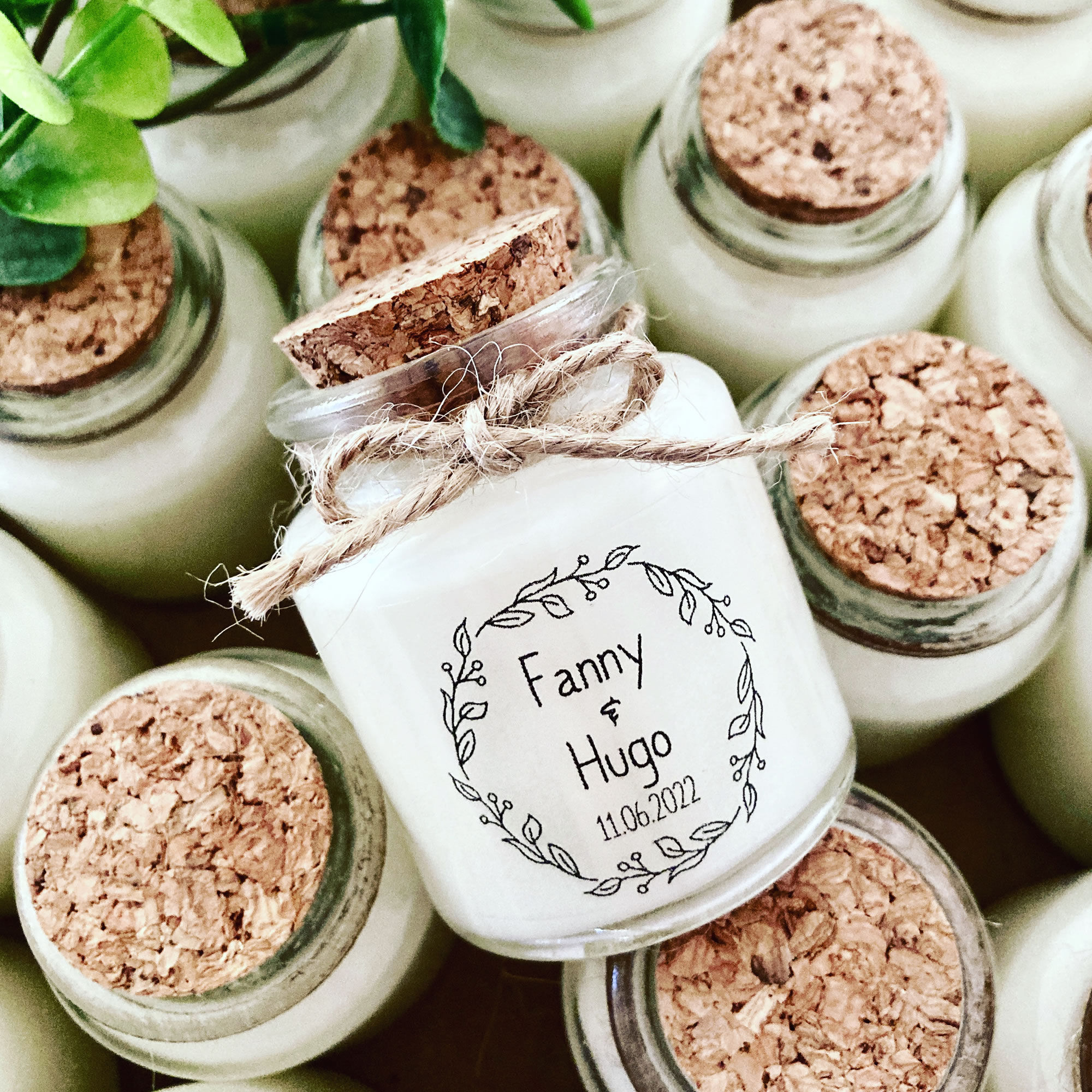 Bougie parfumée personnalisée – Mariage couronne eucalyptus