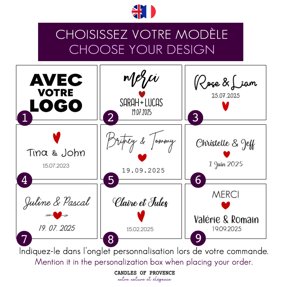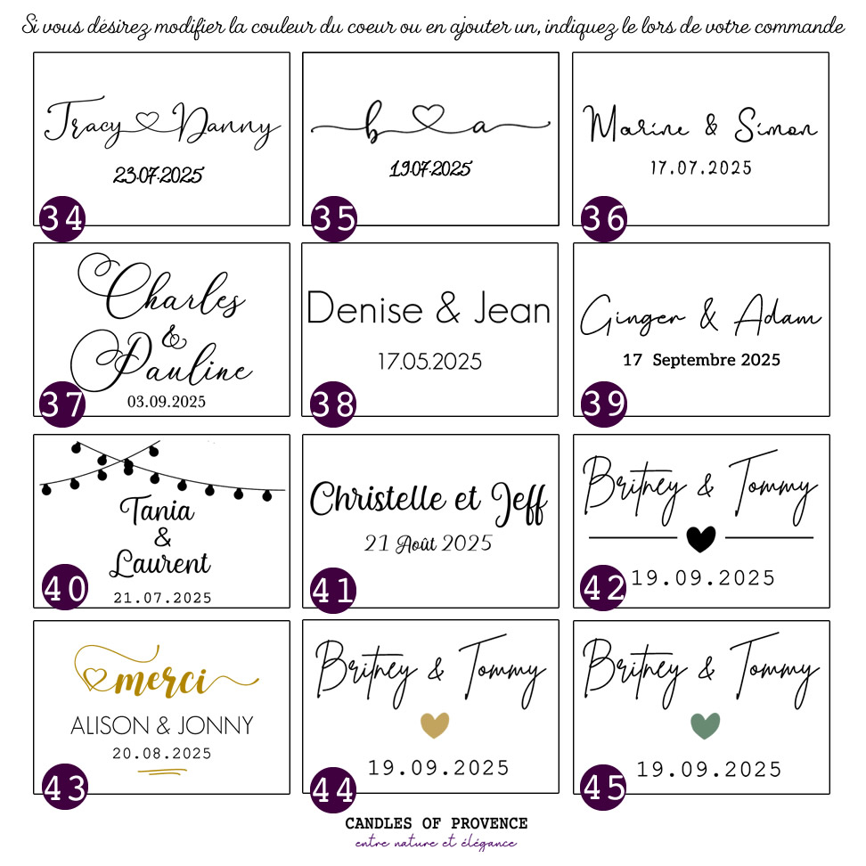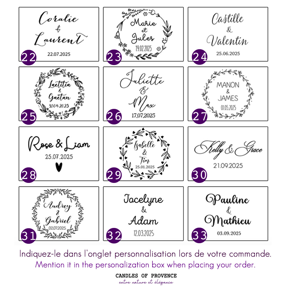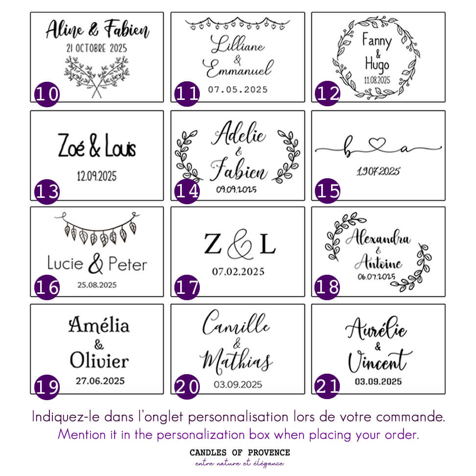 Bougies personnalisées mariage Cadeau original Modèle Tracy