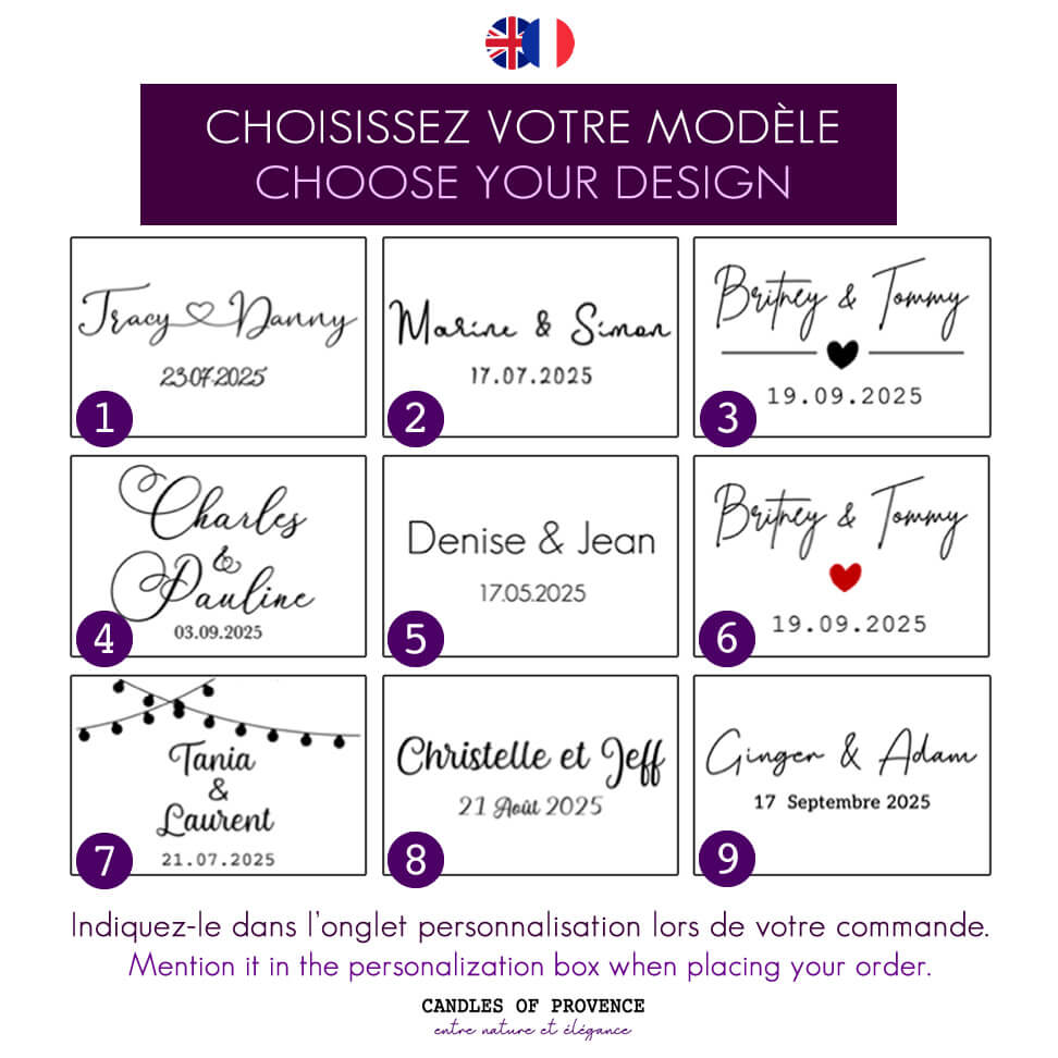 Bougie mariage bohème chic parfumée personnalisée cadeau invités