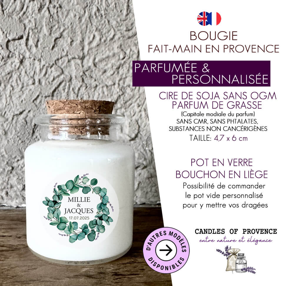 Bougie parfumée personnalisée – Cadeau invités mariage eucalyptus lavande