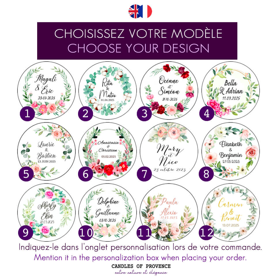 Bougie personnalisée mariage - Couronne florale Cadeau invités