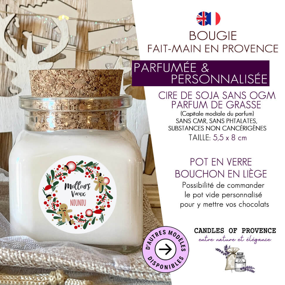 Bougie Noël personnalisée Cadeau maîtresse, nounou, atsem,amis