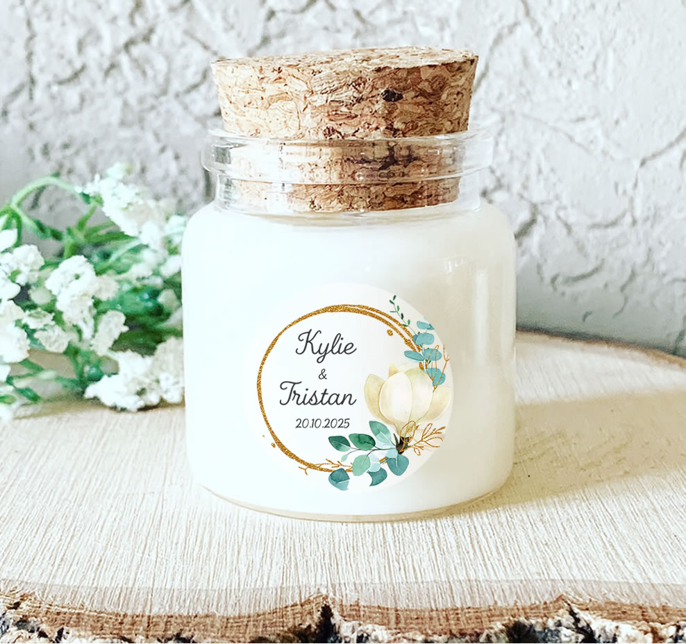 Présentée dans un pot en verre avec bouchon en liège, cette mini bougie personnalisée de mariage est un cadeau d’invité unique et chaleureux. Parfaite pour vos événements : mariages, baptêmes, communions, EVJF ou baby showers. Chaque bougie parfumée personnalisée est un souvenir unique à offrir à vos invités.