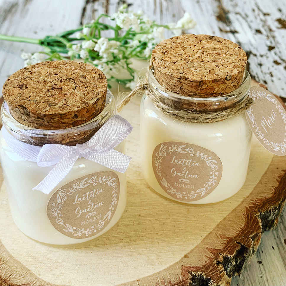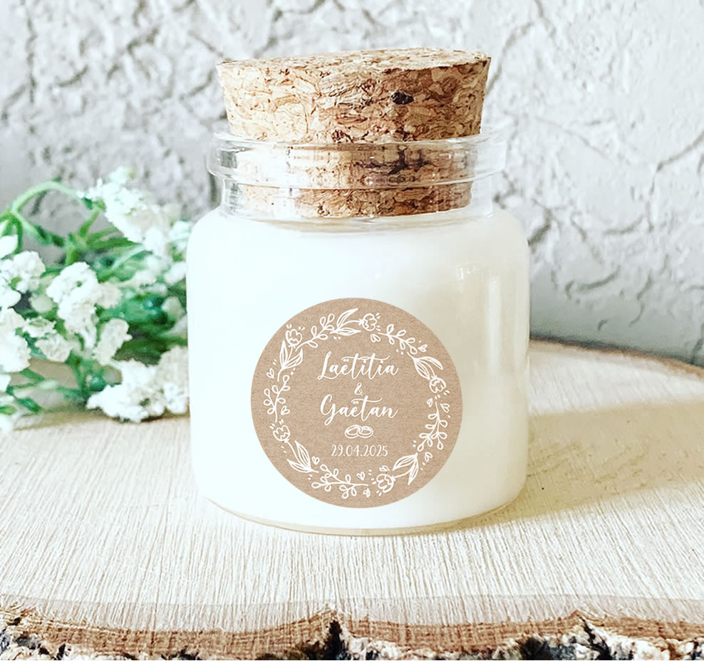 Mini Bougie personnalisée kraft couronne florale – Cadeaux invités mariage