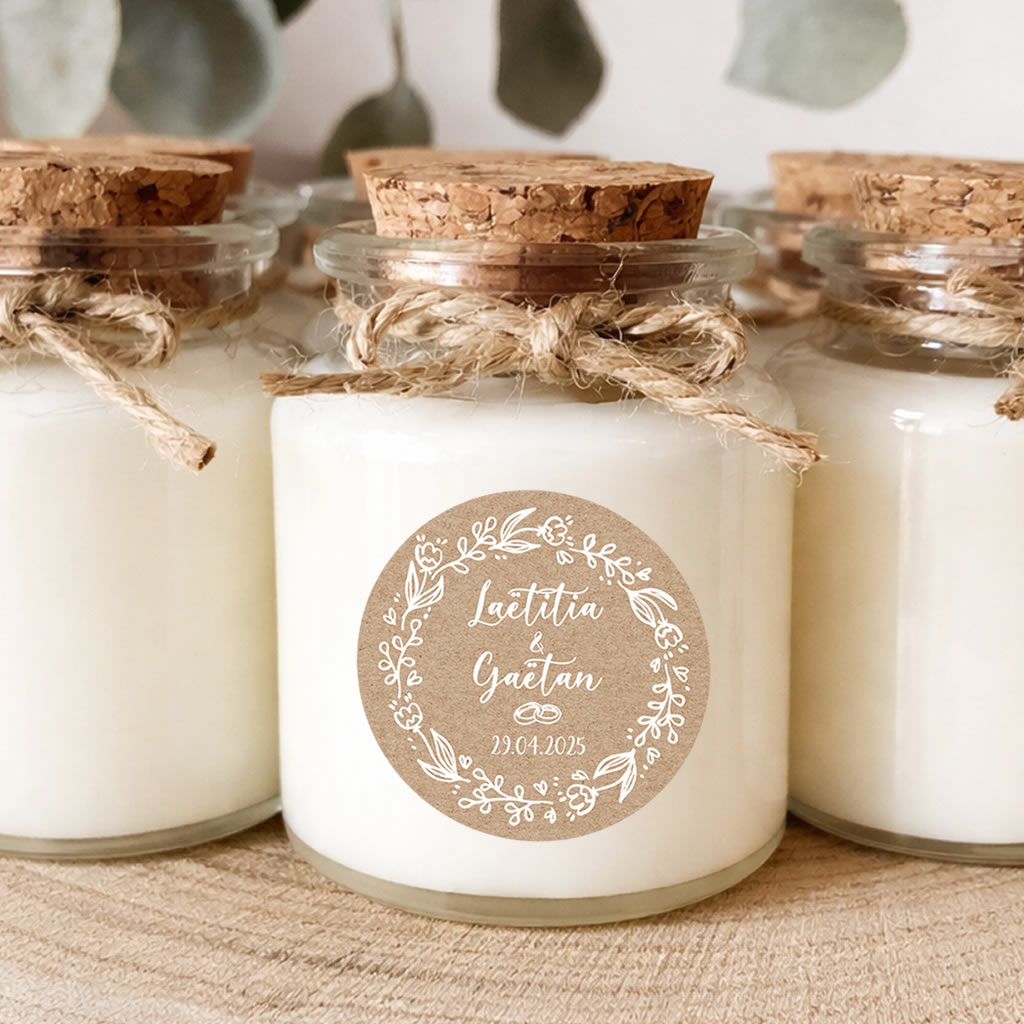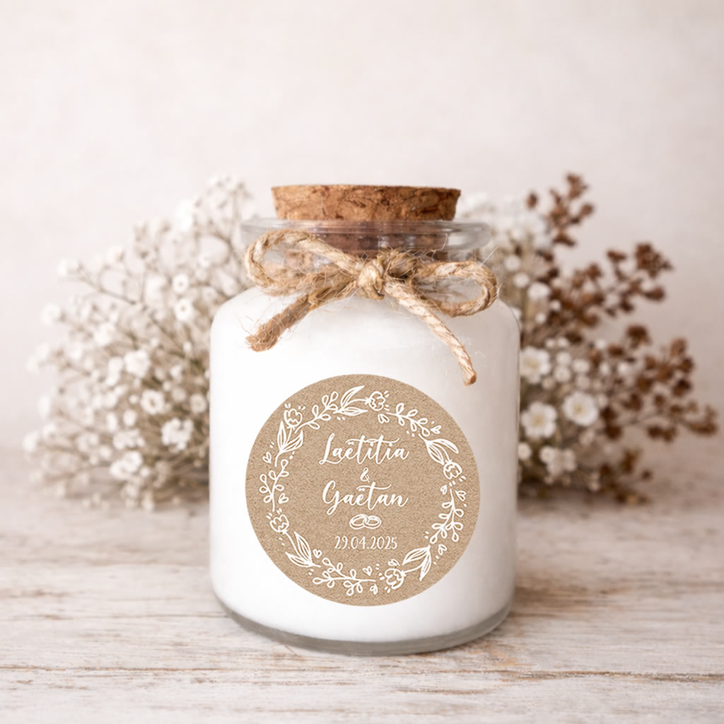 Bougie personnalisée mariage au style kraft